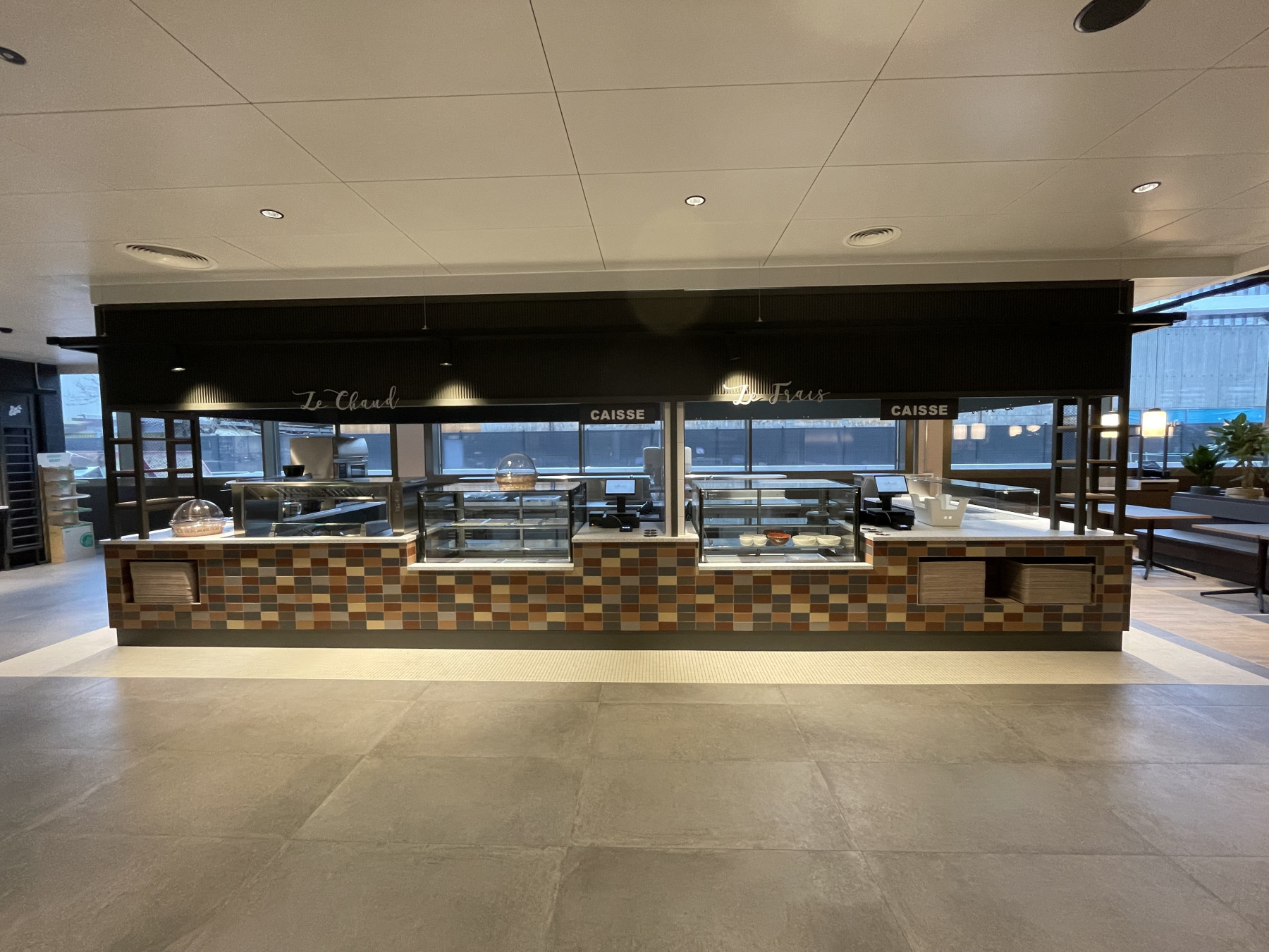 Réalisation des agencements suivants pour le restaurant Spark à Plan les Ouates, Suisse :